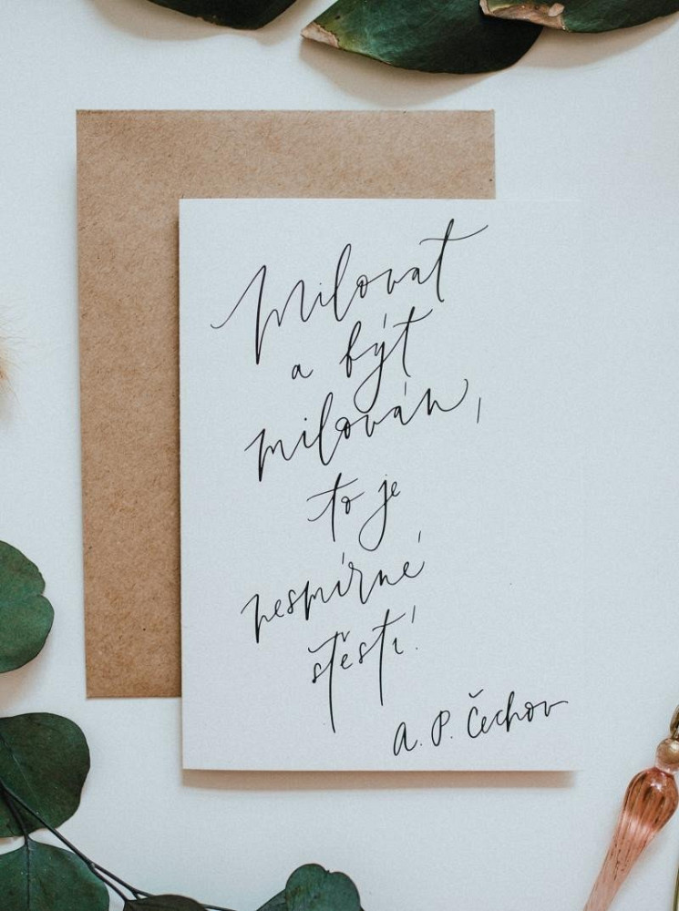 Be Nice EKO přání bílá - „Milovat a být milován, to je nesmírné štěstí“, řekl A. P. Čechov a v tomto duchu se nese také toto přání. Potěšte jím svou drahou polovičku a vyjádřete co k ní cítíte. Přání krasopisně nadepsala česká výtvarnice Bára z Nikolajky. Rozměr: 12 x 17 cm
