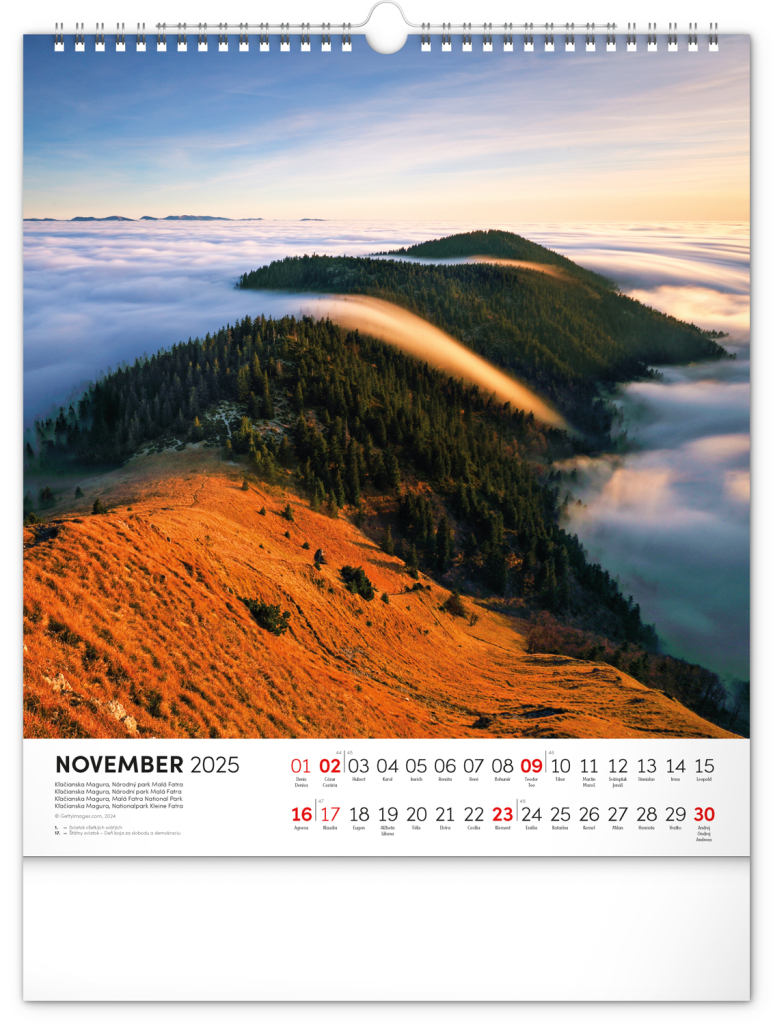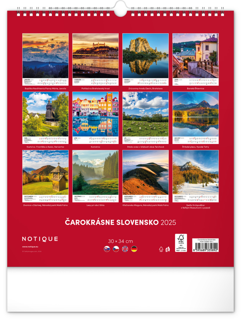 NOTIQUE Nástenný kalendár Čarokrásne Slovensko 2025, 30 x 34 cm