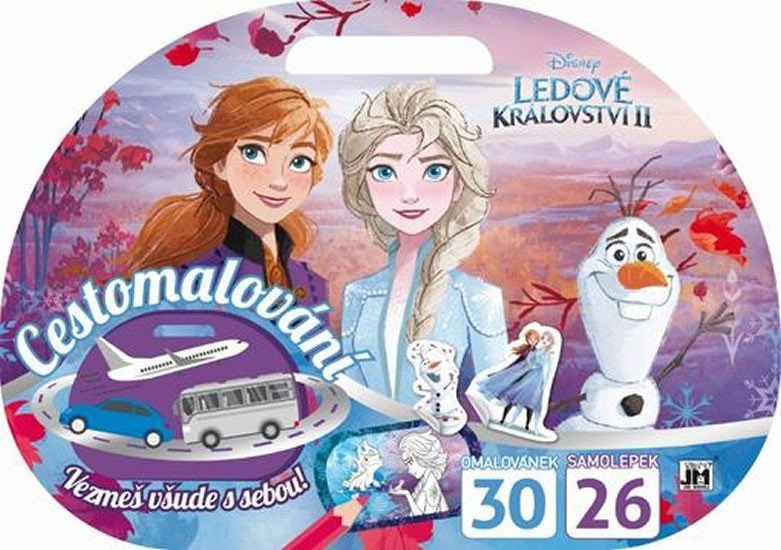 Titul Cestomalování v dětmi velmi oblíbené licenci Ledové království obsahuje 30 stran omalovánek s barevným pozadím a až 26 samolepek. To vše v praktickém cestovním balení s držátkem.