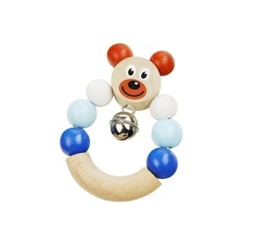 Chrastítko s medvídkem v modré barvě. Rolnička jemně cinká.