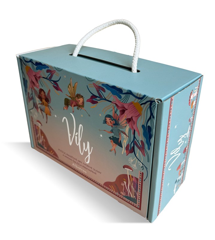 Pripojte sa k vílam a ich dobrodružstvám! S kamarátmi môžeš súťažiť v pamäťových hrách, dopĺňať puzzle a mnoho iného. S týmto kufríkom zažiješ hodiny zábavy! Vnútri nájdeš: 20 kariet s vylupovacími postavičkami a materiálmi pre 6 rozličných typov hier, 1 šnúrku na výrobu vlastného čarovného šperku, 1 malú knižočku na objasnenie pravidiel jednotlivých hier, 1 obrázkovú knižku o vílach a ich jedinečných vlastnostiach.