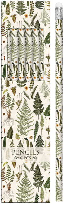 Dárkové tužky Ferns HB s gumou – ideální pro psaní, kreslení a skicování. Stylový motiv kapradí, FSC certifikace, hotové k okamžitému darování.
