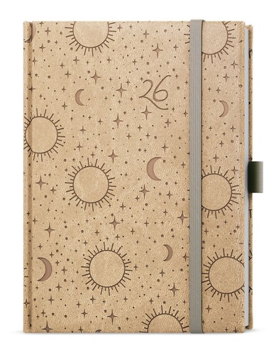 Denní diář v béžové vivelle s krásnou celoražbou motivu Hvězd. Diář v B6 formátu s velkým prostorem pro poznámky a plánování.