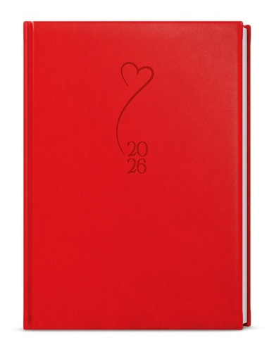 Denní diář v červené barvě je vyrobený z jemné hladké vivelly s efektní ražbou s motivem Srdce. Trendy a praktický doplněk, diář má velký prostor pro poznámky a plánování.