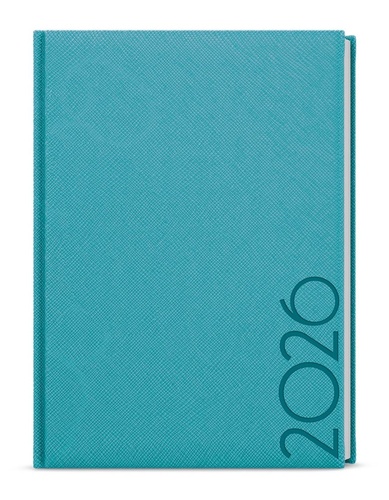 Neobyčejný denní diář s lesklým povrchem ze strukturovaného materiálu v tyrkysové barvě je vyráběný ve formátu A5 a má velký prostor pro poznámky a plánování.