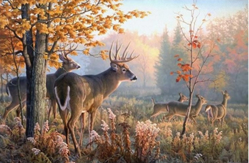 Diamantové malování Jeleni v ranní mlze