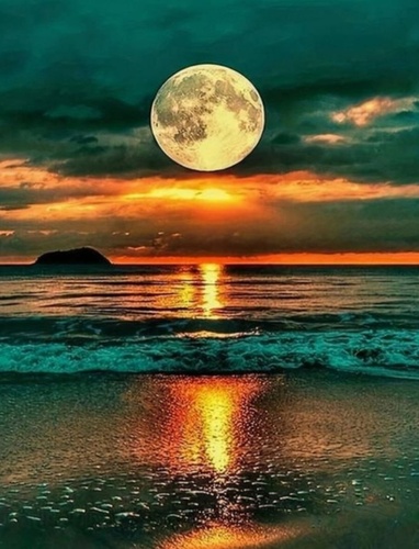 Diamantové malování Úplněk nad oceánem 30x40cm