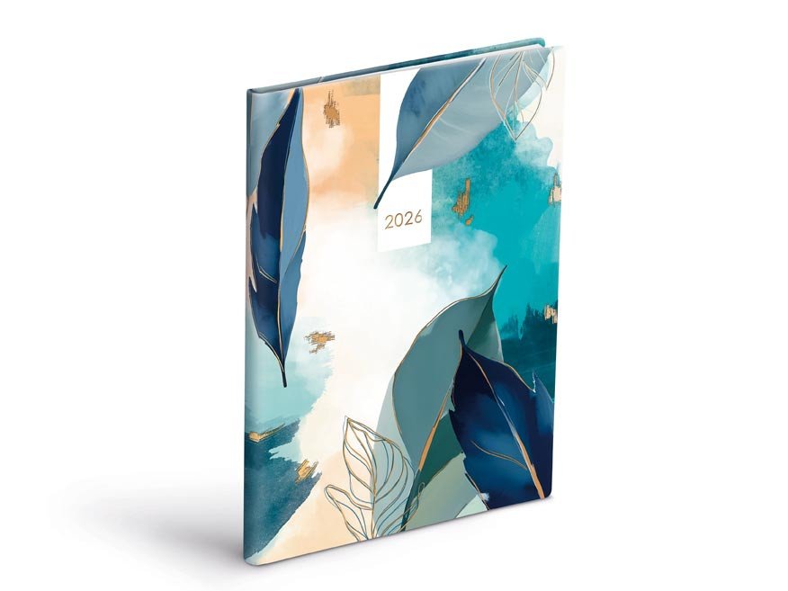 Každý týden v rovnováze! Tento týdenní diář na rok 2026 ve formátu A5 přináší do plánování harmonii i styl. Design inspirovaný přírodou, s motivem stylizovaných listů, kombinuje tlumené tóny modré, tyrkysové a béžové s jemnými zlatými liniemi, které celku dodávají moderní, klidný charakter. Obálka z měkčeného materiálu (PU soft) je hebká na dotek a navržená tak, aby odolala každodennímu používání. Týdenní rozvržení nabízí jasnou strukturu a prostor přesně tam, kde ho potřebujete. A odtrhávací rohy? Malý detail, který ušetří čas každý den.