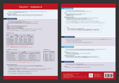Prehľadne spracovaná tabuľka učiva – Číslovky na hodiny slovenského jazyka aj na domáce precvičovanie pre žiakov 2. stupňa základnej školy. Materiál obsahuje podrobný prehľad čísloviek (druhy, skloňovanie, gramatické pravidlá). Tabuľka je spracovaná pedagógmi, aby bola vhodne využiteľná v praxi. Prehľadová tabuľka učiva môže slúžiť aj pre žiakov so špeciálnymi vzdelávacími potrebami.