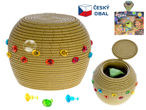 Zabavte sebe i celou rodinu s hrou "Don´t wake the snake". Bláznivá společenská hra, při které zažijete spoustu legrace a kde postřeh, rychlost a přesnost vyhrává. Hráči se střídají s vytahováním drahokamů z koše a doufají, že nebudou vylekáni hadem, který se skrývá uvnitř. Posbíráte všechny drahokamy nebo probudíte to, co se ukrývá v koši? Buďte opatrní, jinak vás had chytí! Vhodné pro děti od 4 let.