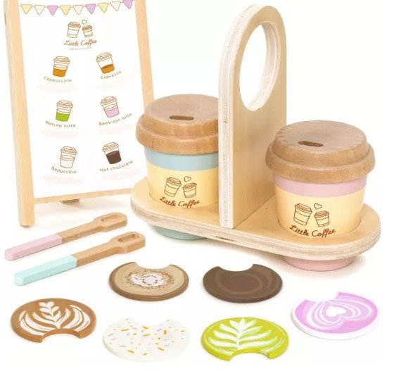Dětská dřevěná sada Káva s sebou se stane oblíbenou součástí každé malé kavárny i dětské kuchyňky.