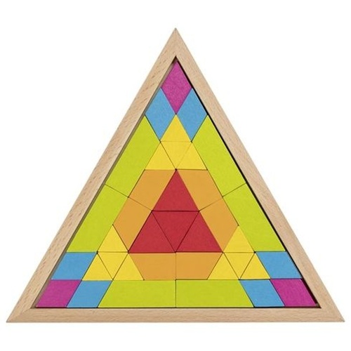 Dřevěná mozaika jsou vlastně rozličné geometrické tvary v rozmanitých barvách uložených do dřevěného rámu. S touto mozaikou je možné si vyhrát dvěmi způsoby – pokud ji chcete využít jako hlavolam, stačí z dřevěného rámu vysypat všechny kostky a seskládat je jako puzzle znovu do rámu a to tak, aby žádná nezbyla. Druhou možností je pak kostky použít na stavění mimo základní desku to zcela dle vlastní fantazie.