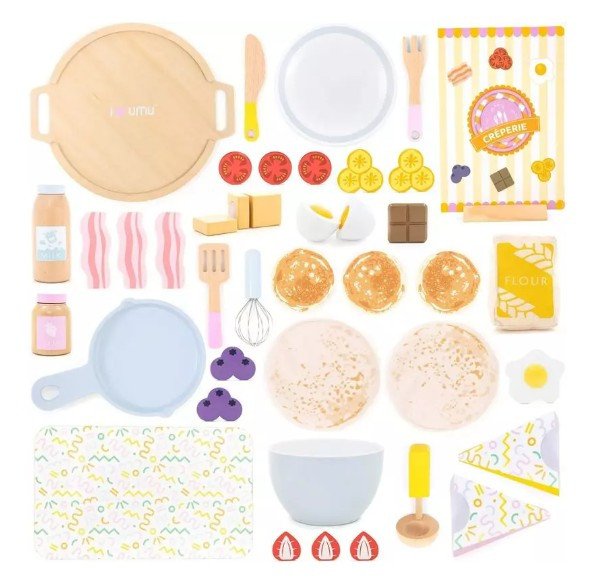 Sada obsahuje samotné nadýchané palačinky a dozlatova opečené lívance, recept na přípravu těsta včetně všech potřebných surovin a nástrojů. Nechybí ani vše potřebné k působivému zdobení a servírování. Sníte si palačinku tady na talíři nebo si ji budete přát s sebou do kornoutku?