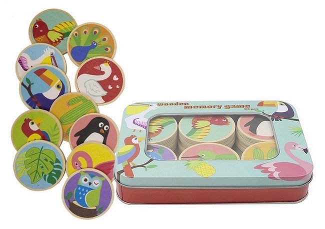 Dřevěná paměťová hra s ptáky
