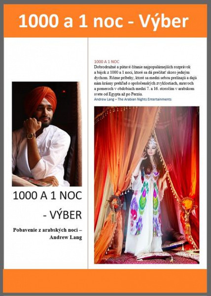 Dobrodružné a pútavé čítanie najpopulárnejších rozprávok a bájok z 1000 a 1 noci, ktoré sa dá prečítať skoro jedným dychom. Rôzne príbehy, ktoré sa medzi sebou prelínajú a dajú nám krásny prehľad o spoločenských zvyklostiach, mravoch a pomeroch v obdobiach medzi 7. a 16. storočím v arabskom svete od Egypta až po Perziu.