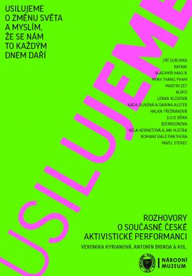 Publikace sleduje různé projevy a možnosti chápání aktivismu a společenské angažovanosti v současné umělecké performanci na území České republiky po roce 2000, a to formou rozhovorů s vybranými umělci, umělkyněmi, uměleckými skupinami či (ne-)kolektivy. Jsou mezi nimi zástupci různých generací, genderů, sexualit, národností, etnik, náboženství, filozofií i estetik. Rozhovory slouží jako prostředek živé společné (sebe)reflexe a kontextualizace tvorby umělců. Ukazují jejich vztah ke společnosti, k aktuální politické a kulturní situaci, jejich zdroje, motivace a cíle, ale i každodennost umělecké práce a spolupráce, jednotlivé pracovní metody a osobní strategie, včetně překážek a omezení, na které umělci při tvorbě narážejí.