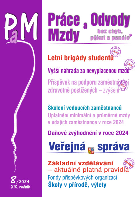 Měsíčník obsahuje aktuální příspěvky doplněné o příklady z praxe a aktuální judikaturu. Je rozdělen na rubriky: Aktuálně, Pracovní právo, Chyby a pokuty, Judikatura, Pracovní cesta, Automobil v podnikání, Odvody, Veřejná správa, Vzory smluv, Výdaje zaměstnavatele, Vedoucí pracovník …