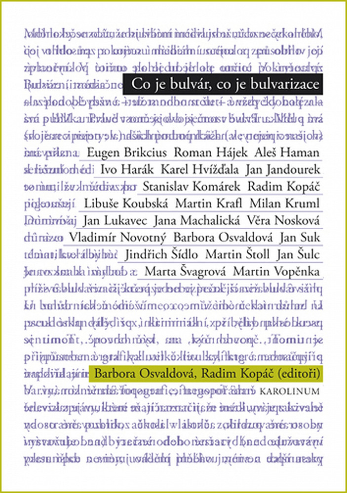 Kolektivní monografie Co je bulvár, co je bulvarizace navazuje na publikace již Nakladatelstvím Karolinum vydané, jako byly texty O fejetonu, s fejetonem nebo O reportáži, o reportérech, Pokusy a dobrodružství – poznámky k eseji, Rozhovory o interview, O komentáři, o komentátorech, Žurnalistika v informační společnosti a podobně. Vždy se jedná o obecný úvod a poté jsou zařazeny relevantní příspěvky odborníků a publicistů, kteří téma rozvíjejí a také popisují, jak využívají materiály ve své činnosti. Monografie o bulváru je více zaměřena na obtížné definování tohoto fenoménu, na jeho historii i současnost. Několik autorů a autorek popisuje svoji zkušenost s bulvárem a bulvárními médii. Bulvarizace je slovo, které se v poslední době objevuje poměrně často. Jedním z cílů této publikace je přinést čtenářům orientaci v tématu a také jim umožnit o fenoménu nezaujatě přemýšlet, protože jak vyplývá z některých příspěvků, takzvaná bulvární žurnalistika nemá jen záporné stránky.