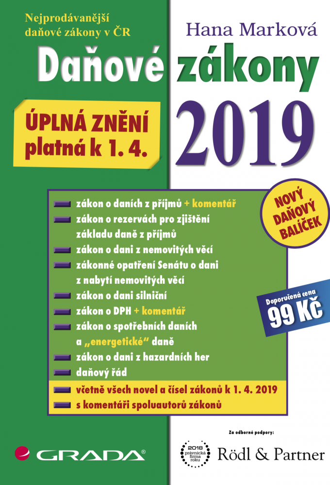 Publikace obsahuje úplná znění všech daňových zákonů k 1. 4. 2019 včetně všech čísel.