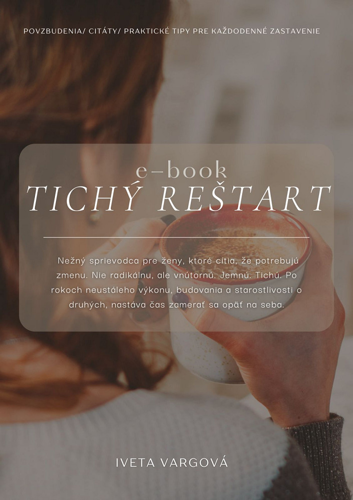 Pre ženy, ktoré nechcú len prežívať – ale znovu sa nájsť. Tichý reštart je jemný, podporný e-book pre ženy, ktoré cítia, že potrebujú zmenu. Nie hlasnú, ale vnútornú. Po rokoch starostlivosti o druhých je čas obrátiť pozornosť k sebe – s citom, pokojom a bez výčitiek. Autorka Iveta Vargová, ktorá viedla tisíce žien v online podnikaní, ponúka povzbudenie, zamyslenia, priestor na vlastné poznámky – a v bonusovej kapitole aj tipy, ako si vytvoriť jemný privýrobok z domu. BONUS PRE ČITATEĽKY: Po dočítaní e-knihy môžu čitateľky získať darček v podobe PDF sprievodcu už aj s konkrétnymi tipmi, pomôckami a stránkami na zarábanie z domu – zdarma, bez záväzkov. Stačí napísať správu autorke na Facebook: https://facebook.com/ywett.better