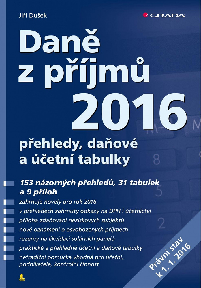 Publikace pomůže všem, kteří dávají přednost názornému vyjádření, rychlé orientaci a rychlému přístupu k aktuálním informacím. Autor v již jedenáctém, aktualizovaném vydání praktické publikace názorně, srozumitelně a velmi přehledně vysvětluje nejpoužívanější paragrafy zákona o daních z příjmů. Výstižnými a stručnými schématy a praktickými daňovými a účetními tabulkami se dotýká i dalších souvisejících oblastí nezbytných pro podnikání. Publikace řeší rezervy na likvidaci solárních panelů, změny u soukromého životního pojištění, finanční leasing, směnu, pojistné události na konci roku, nájmy, narovnání, mzdové exekuce, právní odpovědnost právnických osob, předčasné užívání a zkušební provoz, přehled cenných papírů, přehled zdanění neziskových subjektů apod. Tuto praktickou pomůcku využívají v praxi podnikatelé, stejně jako účetní, auditoři, daňoví poradci a finanční úřady při kontrolní činnosti.
