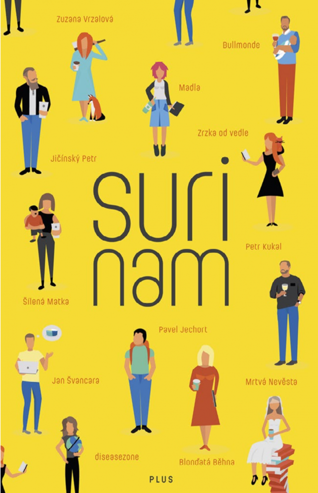 Dvanáct autorů, známých především z prostředí českého Twitteru, vedle svých každodenních tweetů píše i delší texty do online magazínu Suri-nam (nominovaný v anketě Křišťálová lupa 2018). Někteří – třeba Šílená Matka, Bullmonde, Blonďatá Běhna či Zrzka od vedle – zůstávají ve skrytu svých twitterových přezdívek, jiní jako třeba básník Petr Kukal či blogger Jan Švancara jdou s barvou... tedy jmény ven. Jejich zážitky ze života, úvahy a komentáře doplňují trefné ilustrace.