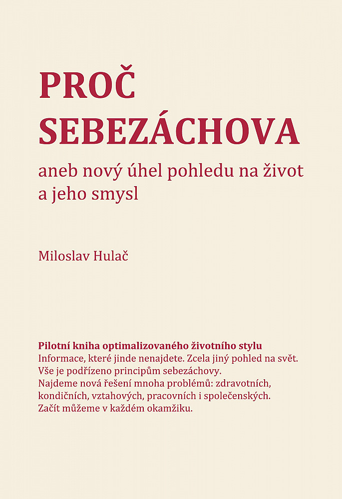 Cestou sebezáchovy se naprosto přirozeně ubírá každý z nás, aniž si uvědomuje, že se podřizuje prvotním principům veškeré existence. Znalost těchto principů a jejich využití může mít zásadní vliv na další vývoj našeho života. Můžeme pochopit, co sebezáchovné mechanizmy oslabuje a co je naopak může obnovovat a posilovat, a hlavně poznat, jak vše využít ve svém životě.