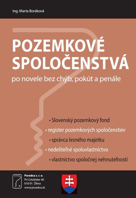 Vydavateľstvo Poradca Vám prináša titul Pozemkové spoločenstvá po novele bez chýb, pokút a penále. Spoločenstvom podľa zákona o pozemkových spoločenstvách je napríklad lesné a pasienkové spoločenstvo vlastníkov podielov spoločnej nehnuteľnosti. Zavedením zákona sa aplikovali skúsenosti z praxe zákona u orgánov štátnej správy ale aj samotných pozemkových spoločenstiev a ich členov. Rozšírili sa nové možnosti ústavnoprávnej ochrany poľnohospodárskej a lesnej pôdy vytváraním a posilňovaním usporiadania vlastníctva spoločnej nehnuteľnosti ako aj možnosti nadobudnutia vlastníctva podielov spoločnej nehnuteľnosti spoluvlastníkmi alebo samotným spoločenstvom. Právna úprava pozemkových spoločenstiev musí byť vnímaná aj z pohľadu daní a účtovníctva, preto sa v publikácii venujeme aj tejto téme.