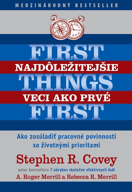 Chcete žiť tak, aby ste stíhali svoje povinnosti a zároveň si užívali všetko, čo máte radi? Zamysleli ste sa niekedy, či to, čo práve robíte a kam smerujete, je skutočne pre vás to najdôležitejšie? Tradičné teórie o manažovaní času, ktoré učia ľudí spraviť čo najviac vecí za čo najkratší čas, sú už prekonané. Stephen R. Covey a A. Roger Merrill prichádzajú s knihou, v ktorej nájdete spôsob, ako si zariadiť život tak, aby ste rozpoznali svoje skutočné ciele, utriedili si ich podľa dôležitosti a následne im venovali toľko času, koľko potrebujete, aby ste sa cítili dobre. Táto kniha nadväzuje na predošlý Coveyho klasický bestseller 7 návykov skutočne efektívnych ľudí a pomôže vám lepšie zhodnotiť, čo je vo vašom živote skutočne to najdôležitejšie, čomu sa oplatí venovať čas, záujem či snahu.