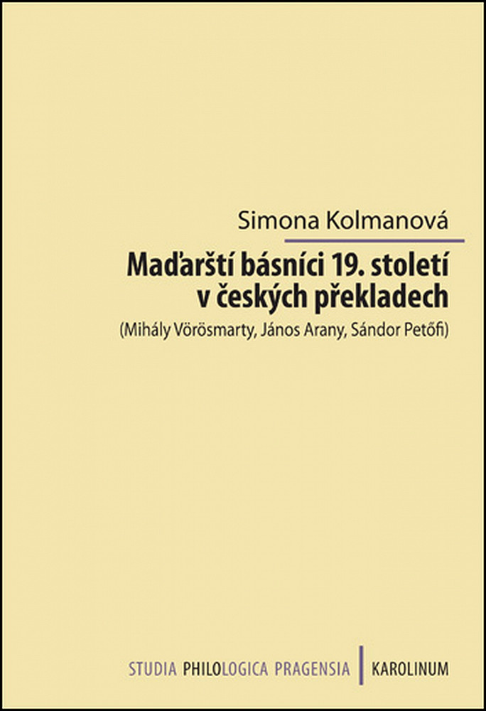 Hungaristka a překladatelka Simona Kolmanová přibližuje českému čtenáři na základě překladů tři významné osobnosti maďarské literatury 19. století – Mihálye Vörösmartyho, Jánose Aranye a Sándora Petöfiho. Ačkoli byla z maďarské poezie daného období přeložena do češtiny tvorba pouze těchto autorů, lze říci, že tito básníci představují dostatečně reprezentativní výběr. Zároveň však pokrývají značně široké spektrum tvorby, na němž lze ukázat nejen vývoj a rysy maďarské literatury, ale také přiblížit obecnější problematiku překladatelské praxe a otázky spojené s českými překlady z maďarštiny. Studie Simony Kolmanové tak navzájem kombinuje přístup literárně historický s přístupem teoreticko překladatelským ve snaze uvést českého čtenáře do blízkosti "původního" světa maďarských literárních děl a přispět k jejich lepšímu pochopení.