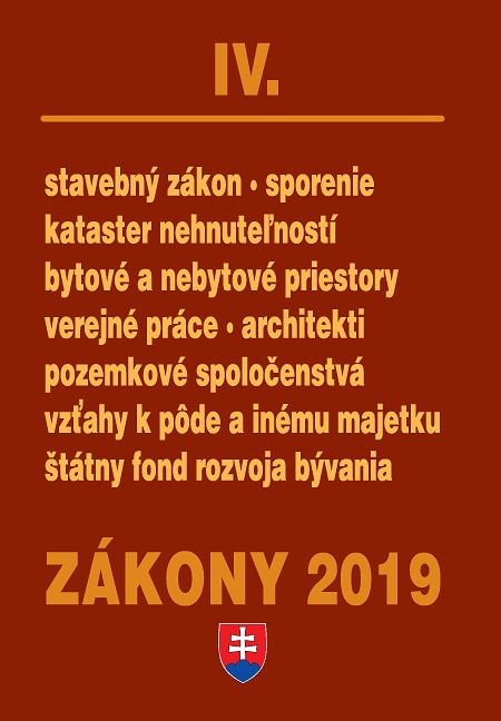 Zborník zákonov obsahuje úplné znenie zákonov, vyhlášok a opatrení po novelách platných k 1. 1. 2019. Právne predpisy sa týkajú stavebného, pozemkového práva a bývania. Zborník je v roku 2019 doplnený o Zákon o nájme poľnohospodárskych pozemkov, poľnohospodárskeho podniku a lesných pozemkov a novú Vyhlášku, ktorou sa ustanovujú podrobnosti o spôsobe a rozsahu vedenia a poskytovania evidencií a stanovenia obvyklej výšky nájomného.