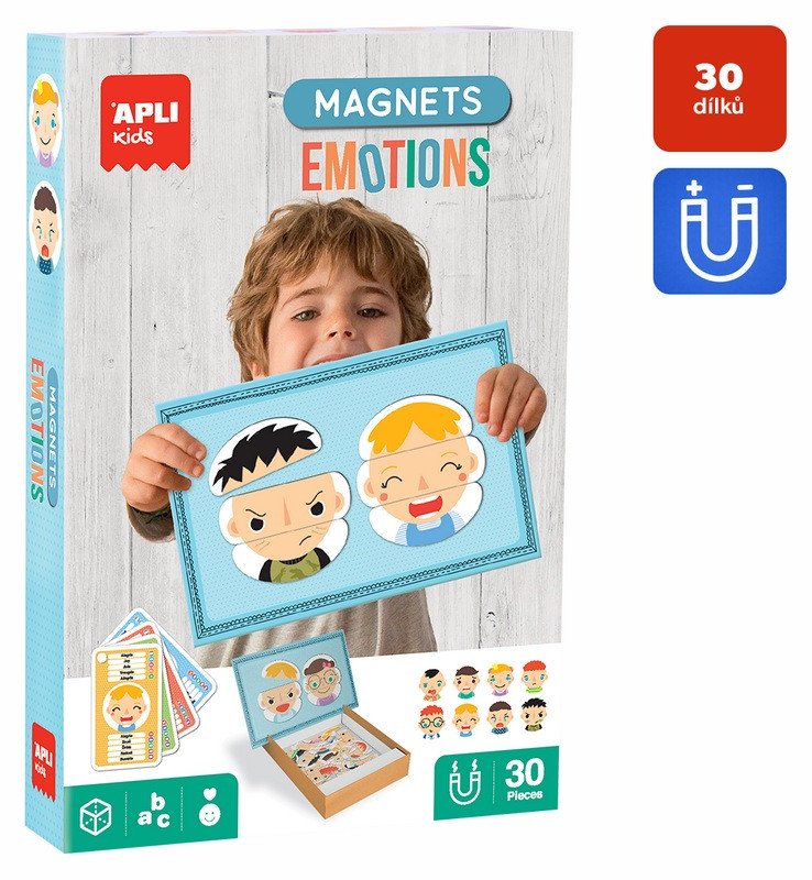 • obsah sady: 1 ks magnetická podložka, 30 ks magnetů s výrazy a prvky obličeje, návod v 19 jazycích (vč. češtiny)