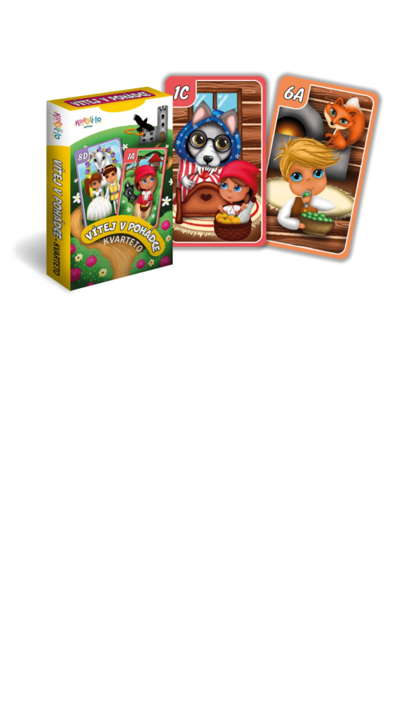 Najdete tady pohádku Bajaja, O Červené karkulce, Perníková chaloupka, Budulínek či O Popelce. Po získání kvarteta si můžeš zahrát na vypravěče a podle obrázků povyprávět celou pohádku.
