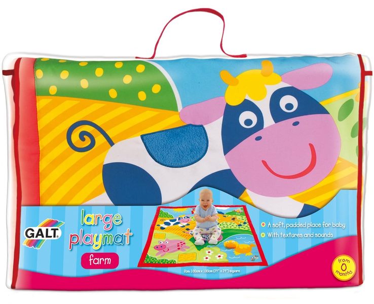 GaltVelká dětská hrací deka s motivem farmy s aktivními prvky pro správný vývoj dítěte.