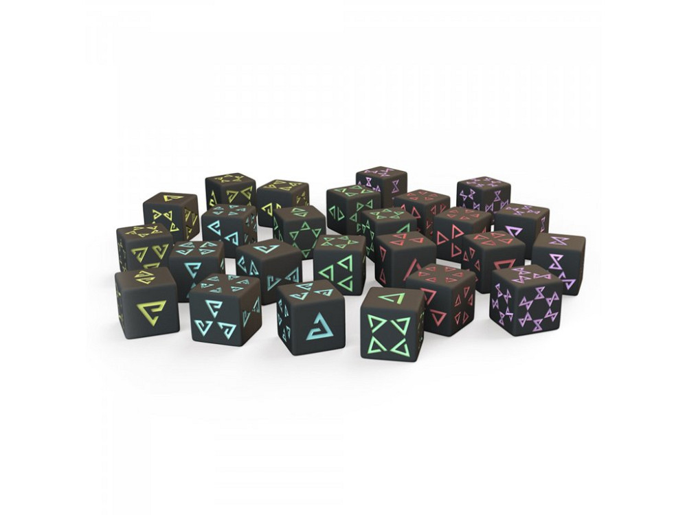 Balení herních kostek (pro 5 hráčů – celkem 25 kostek) je parádním dárkem pro každého fanouška stolní hry Zaklínač: Starý svět. Pořiďte si sadu stylových kostek, ve které se nachází 25 kostek v pěti různých barvách.