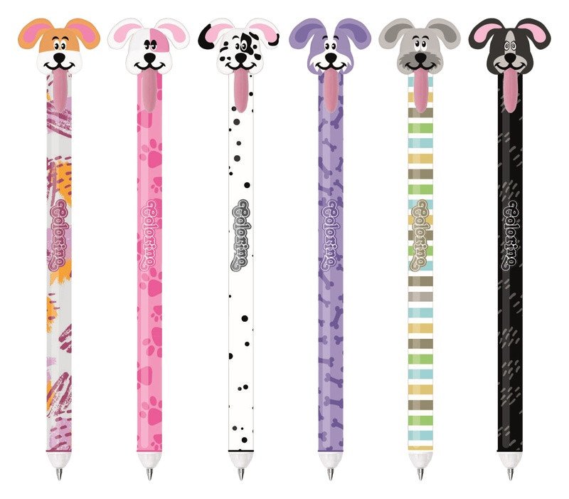 Konec chybám a škrtání v sešitech. Prostě je vymaž a přepiš. Pevná pryž na konci pera a jedinečné složení inkoustu zaručuje jednoduché a opakované gumování. K dispozici náhradní náplň.brbrGumovatelná pera s veselou koncovkou ve tvaru pejsčí hlavy. Pro zapnutí pera jednoduše zatáhni za vyplazený jazyk a můžeš se pustit do psaní.