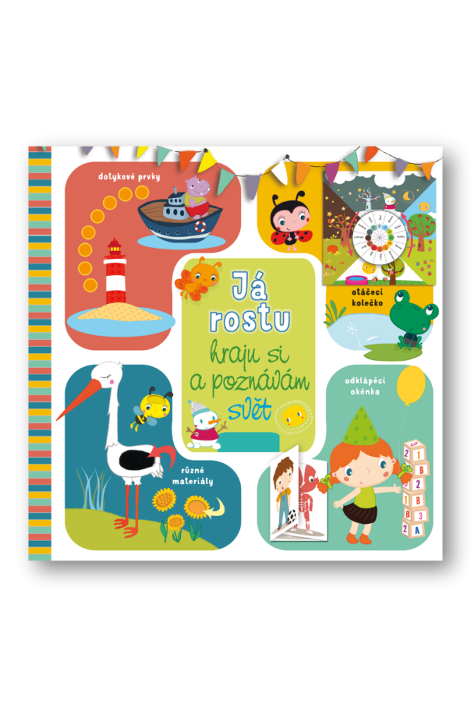 Odklápěcí okénka, stránky složené z rozličných materiálů, vytahovací obrázky, otáčecí kolečka, dotykové prvky… Otevírá se před vámi interaktivní knížka s veselými barevnými obrázky, která je určena těm úplně nejmenším čtenářům, kteří právě poznávají svět kolem sebe. Děti se naučí, co je to čas a jak plyne, jak se mění roční období a jaká jídla je zdravé jíst. Poznají barvy, tvary i protiklady. Prozkoumají dopravní prostředky, písmena i čísla. Díky této knížce děti nejen poznají svět, ale přiučí se i o správném chování a zdravém způsobu života. Aktivity na stránkách je budou bavit – podněcují totiž k samostatnosti a (s drobnou pomocí rodičů) k poznání světa ve všech jeho důležitých aspektech.