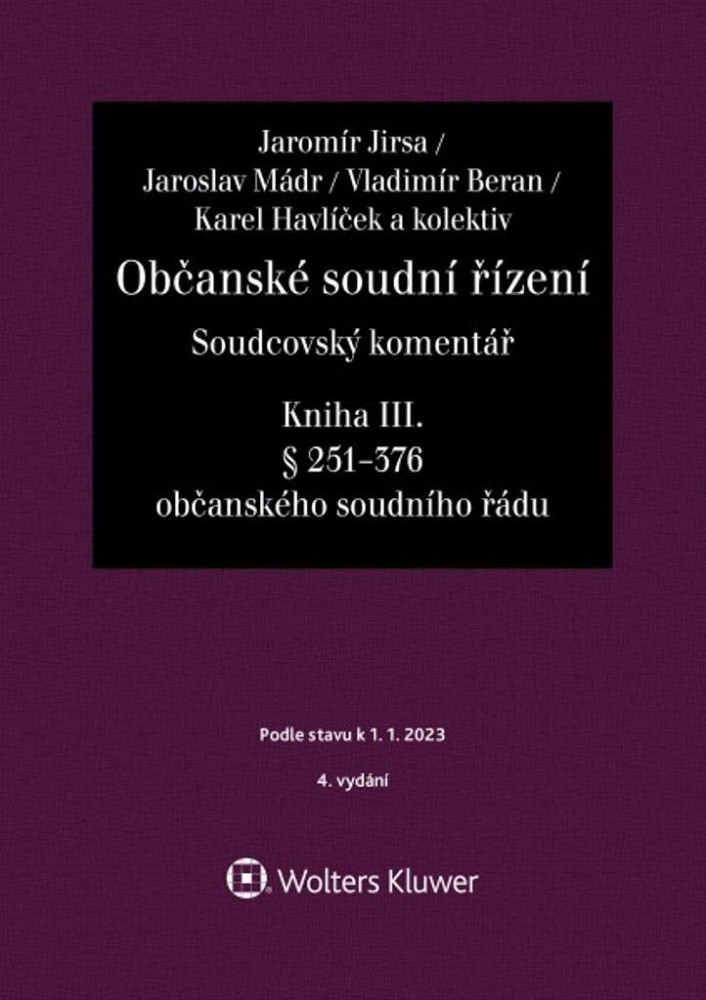 V novém vydání jsme snížili počet svazků. Kniha III obsahuje výklad § 251 až 376 o. s. ř., tedy výklad části šesté – výkon rozhodnutí, části sedmé – jiná činnost soudu a části osmé – závěrečná ustanovení.