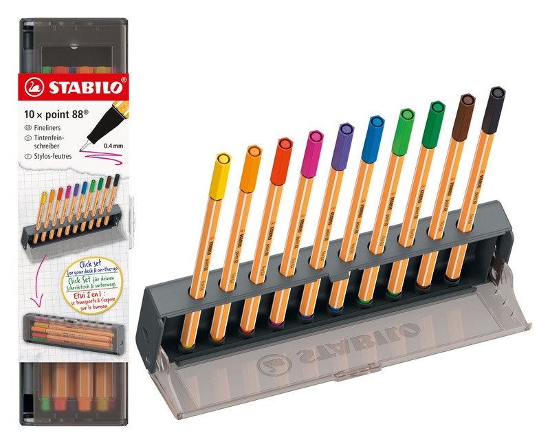 Jemný liner STABILO Point 88, 10ks Click Set