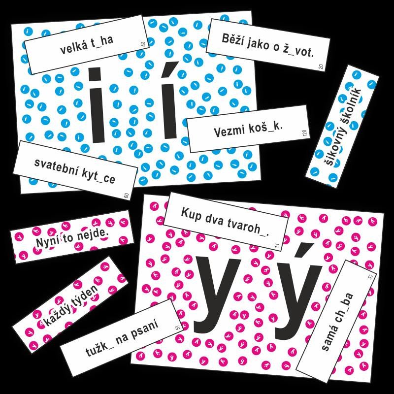 Slovní spojení na 500 kartičkách k procvičení psaní I, Í, Y, Ý po měkkých a tvrdých souhláskách.Součástí je i 1 sada podložek - Slab. měkké a tvrdé - podložky.