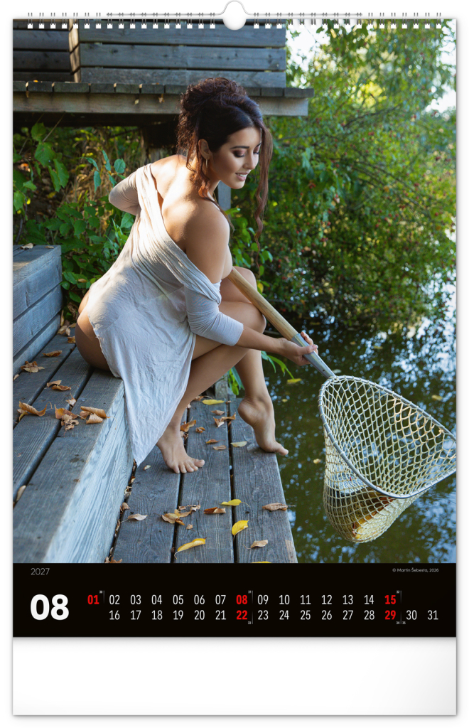 Nečekané spojení trofejních ryb a ženské krásy na stránkách nástěnného kalendáře s univerzálním kalendáriem pro všechny skutečně vášnivé rybáře.