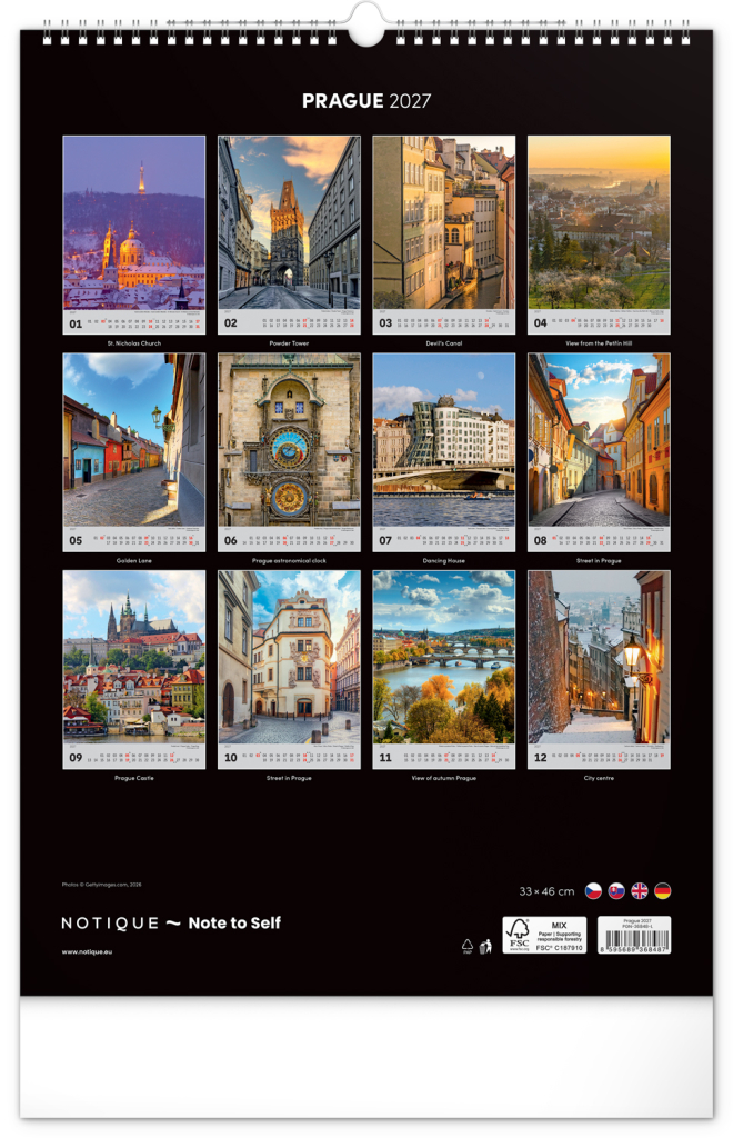 Kalendář 2027 nástěnný: Praha, 33 x 46 cm