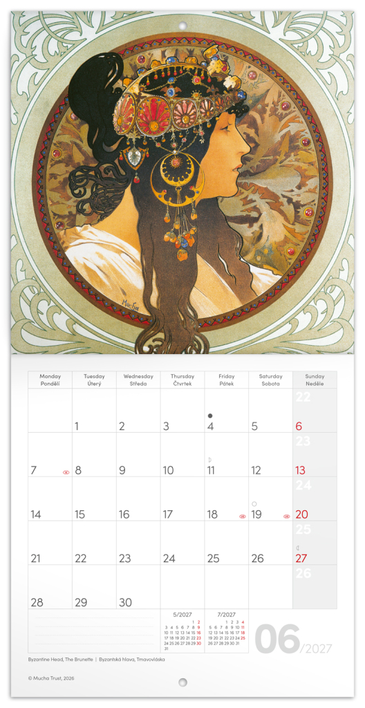 Kalendář 2027 poznámkový: Alfons Mucha 2027, 20 x 20 cm