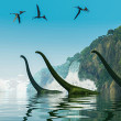 Poznámkový kalendář s věrnými ilustracemi pravěkých dinosaurů a šestijazyčným kalendáriem uzpůsobeným pro vaše plány a poznámky.