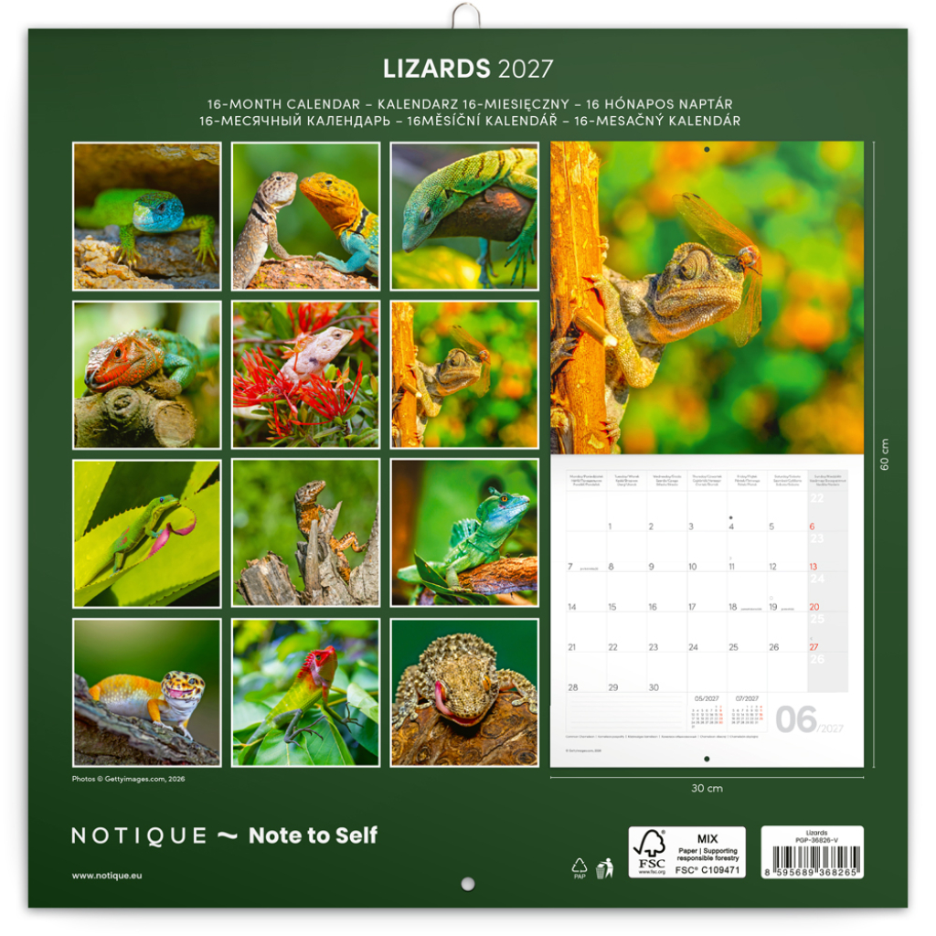 Kalendář 2027 poznámkový: Ještěři, 30 x 30 cm