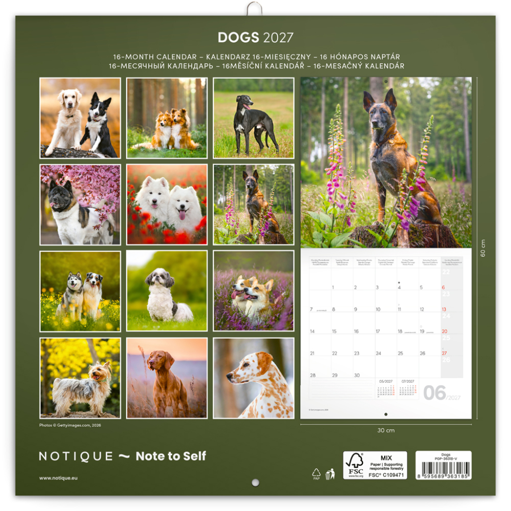 Kalendář 2027 poznámkový: Psi 2027, 30 x 30 cm
