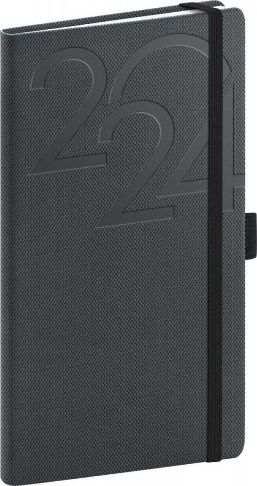 Kapesní diář Ajax 2024, antracitový, 9 × 15,5 cm