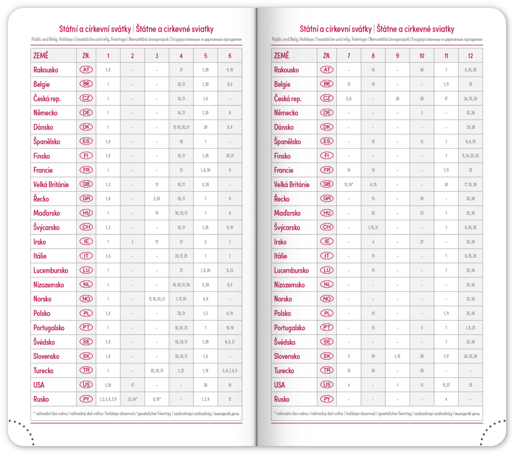 • svátky České a Slovenské republiky a mezinárodní svátky