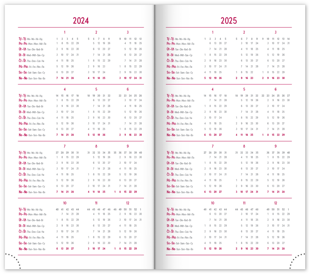 Kapesní diář Catanella 2024, fialový, 9 × 15,5 cm