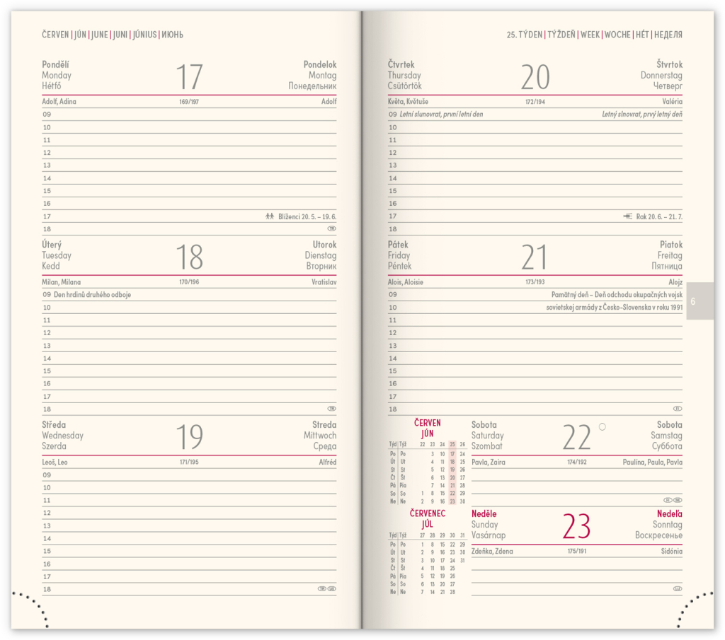 Kapesní diář Diamante 2024, červený, 9 × 15,5 cm